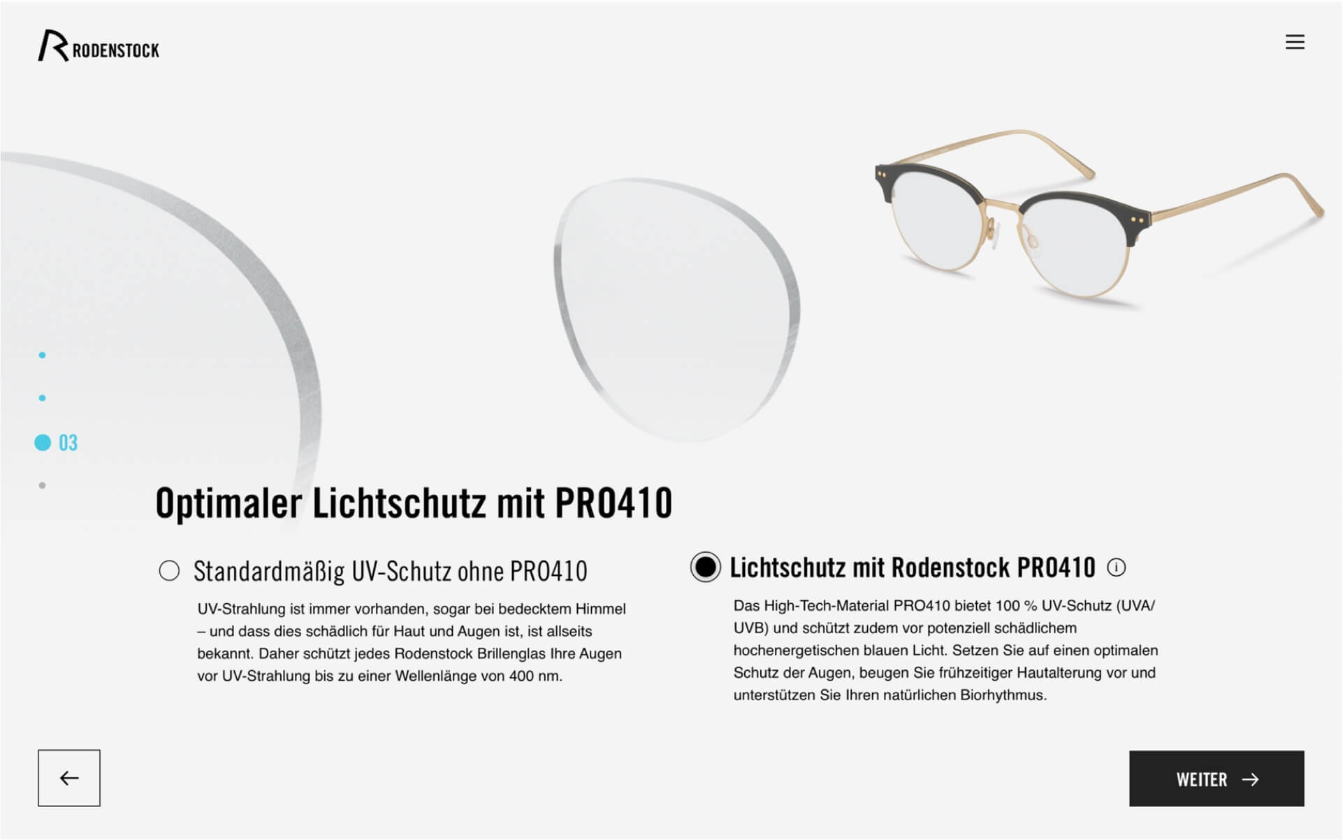 Rodenstock steht für Handwerkskunst, Präzision und Innovation. Ziel war es eine neue Website zu schaffen, die das Premium-Image widerspiegelt und gleichzeitig als zentrale Informations- und Vermittlungsplattform dient. Zudem sollte der komplexe Beratungsprozesses digitalisiert werden, um zusätzlich Onlinekunden zu gewinnen.